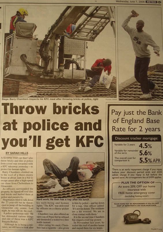 http://img.photobucket.com/albums/v146/nates1984/bricks-equal-kfc.jpgThe more we dumb down society, the more crap like that will happen. Of course, this faggotry this will continue. We'll lower the passing grade more and more and give people who assault police chicken for one simple reason.