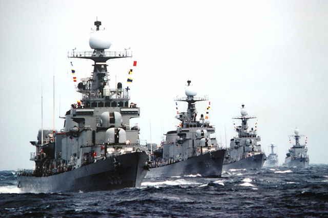 Yeah, we can, but not all. North Korea still has more missiles than U.S. has ABM and U.S. Navy's point defense systems have a maximum range of 10 miles or so; they use guns, you see, either a Gatling or an ultra-high-power shotgun. And they usually don't begin firing until the missiles are nearly at point-blank range to maximize barrel life span, so chances are low that the point defense systems will intercept the missiles unless they were flying directly towards them. We still don't have a potent defense against the normal artillery shells, however, (the only anti-shell point defense system is deployed in Israel only as of now) and South Korean analysts think it will be the forward artillery of North Korea that will deal most damage to South's defense because of that. 11,000 guns pointed at your head, and you can't stop them.