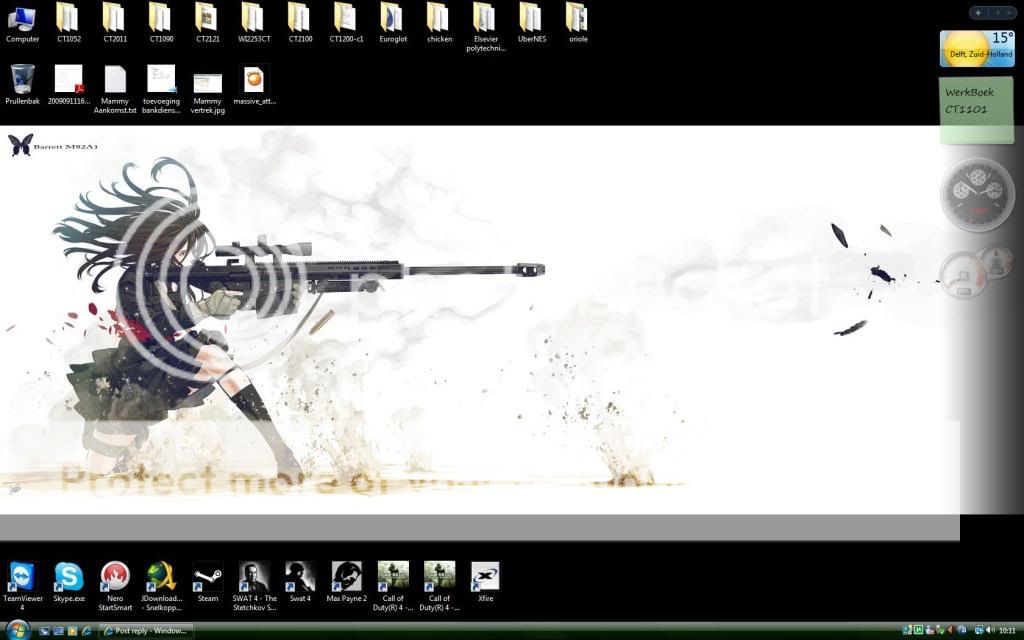 Quote from: Rebs on September 19, 2009, 07:20:17 AM (click to show/hide)No fancy (rainmeter) skins here.Just a chick with a most awesome sniper rifle (Barrett Model M82A1).I would like to request ^^And here's Mine