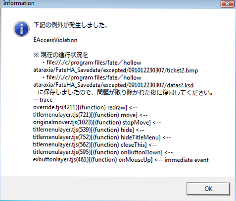 Mine works like a charm. I can load it now and take screen shots. I played through it. Tho' IT NEEDS SOME FREAKING TRANSLATION. Honestly, Type-Moon NEEDS to re-release this with voices, period. That's the major flaw now. No voices, not gonna be a good game/anime, whatever.