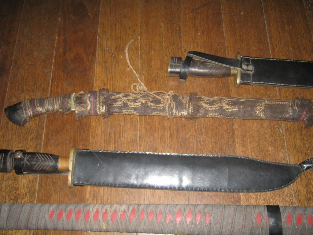 The small ones are my collections I bought it 2 years ago... The swords belong to my father they are old and unsharpened the other swords were stored at our basement won't bother searching and taking a picture of it...