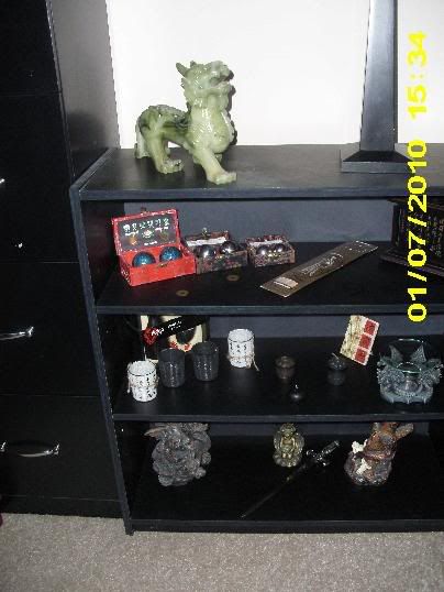 I decided to show my room, both my entertainment room ( oriental themed ) bedroom current ( Medieval/fantasy ) and the starts of my third themed room, Egyptian themed.