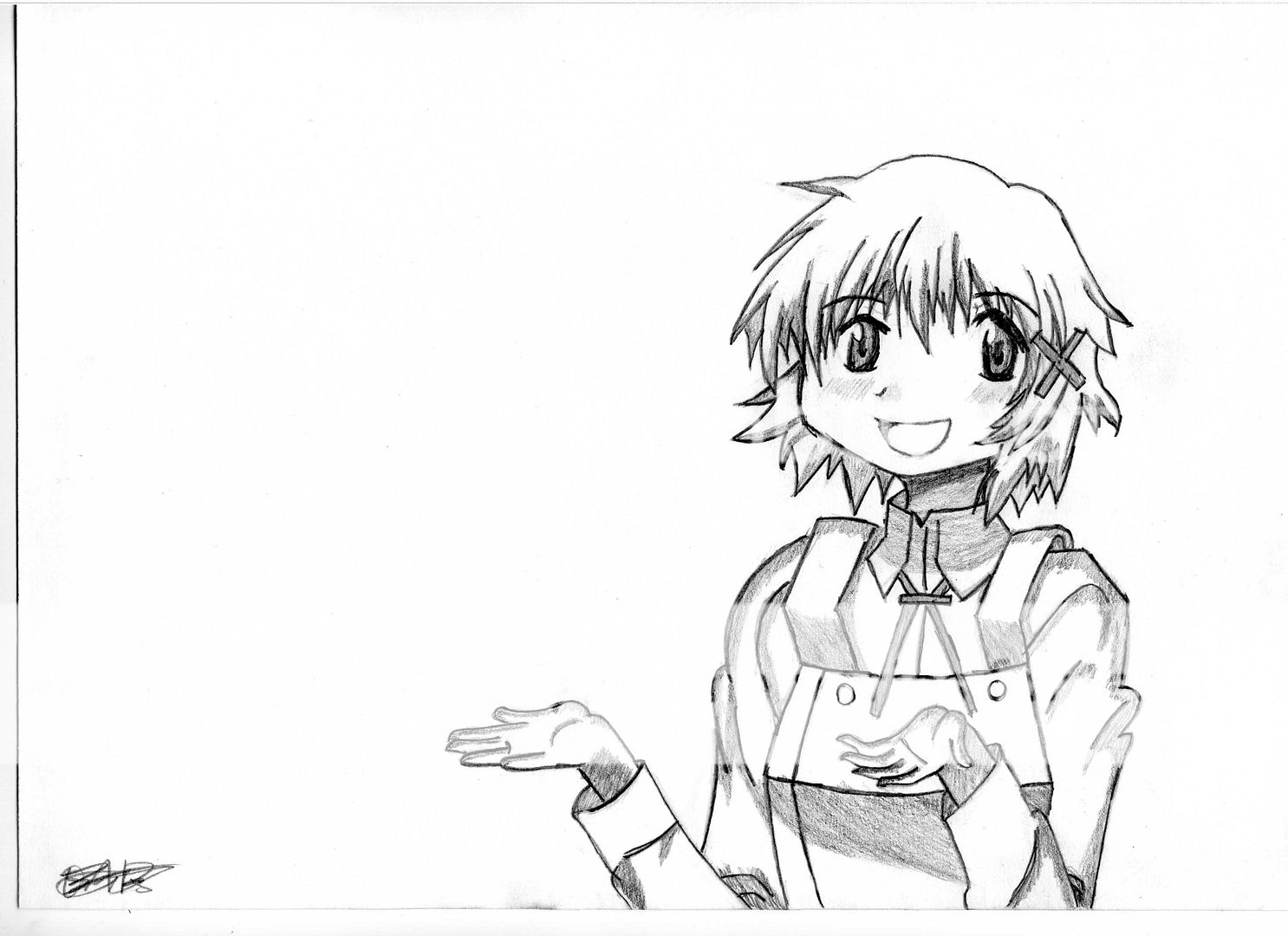 Something I did a few days ago. I messed up on the proportions (too small of a head) and I guess I failed at the hands too, they were just too hard D: